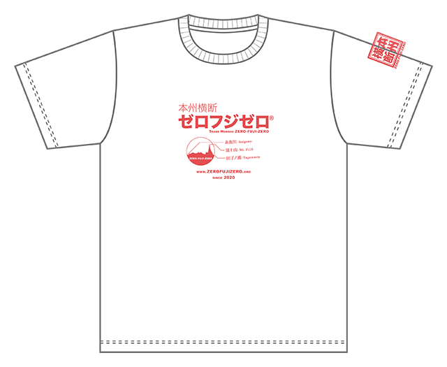 - 左袖に、「本州横断」の囲み文字と、小さく「ZERO-FUJI-ZERO」の文字